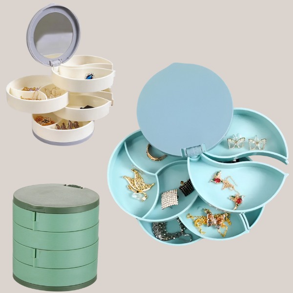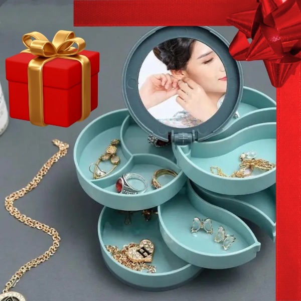 Forgassa meg a dobozt 360°-ban, hogy azonnal megtalálja a szükséges ékszereket – nem kell többé kupacokban vagy fiókokban kotorászni.