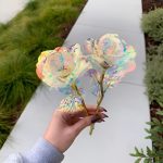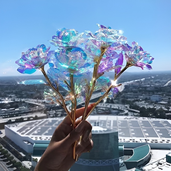 Minden rózsa irizáló, holografikus bevonattal készült, amely gyönyörűen csillog a fényben, galaxisszerű csillogást keltve, amely egyszerűen elbűvölő.