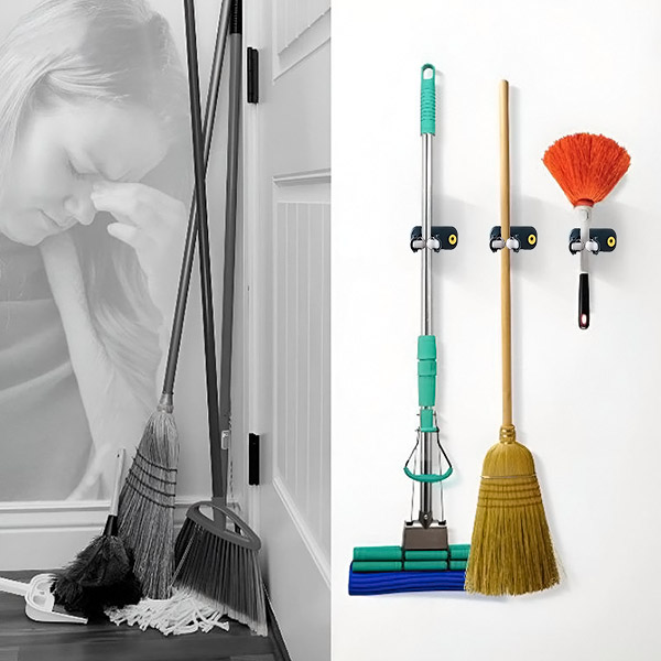 🧹 Tartsa rendben a helyét a 3 sokoldalú tartóból álló készletünkkel! Tökéletes a felmosórongyok, seprűk és egyebek rendszerezéséhez otthon, a garázsban vagy a kertben. 🚪🧺