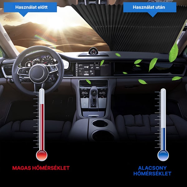 Termékünk hatékonyan blokkolja a káros UV-sugarakat, megakadályozva az autó túlmelegedését és károsodását. Segít fenntartani a hűvösebb belső teret, és jelentősen csökkenti az autó üléseinek és műszerfalának károsodását.