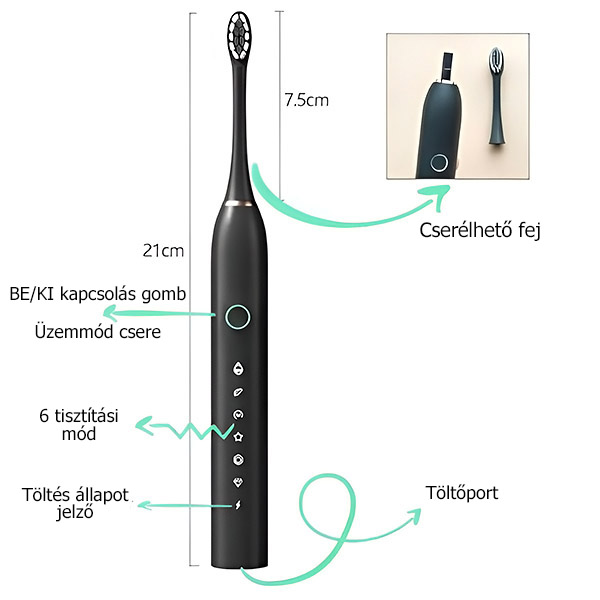 🦷 6 üzemmóddal és IPX7 vízállósággal a fogápolási rutin most vált egyszerűbbé és hatékonyabbá!