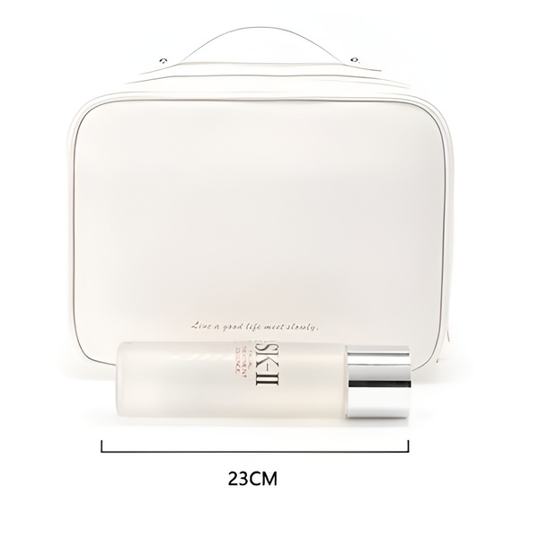 A tartós, vízálló anyagból készült táska megóvja kozmetikumait a sérülésektől, miközben egy csipetnyi luxust kölcsönöz nekik.